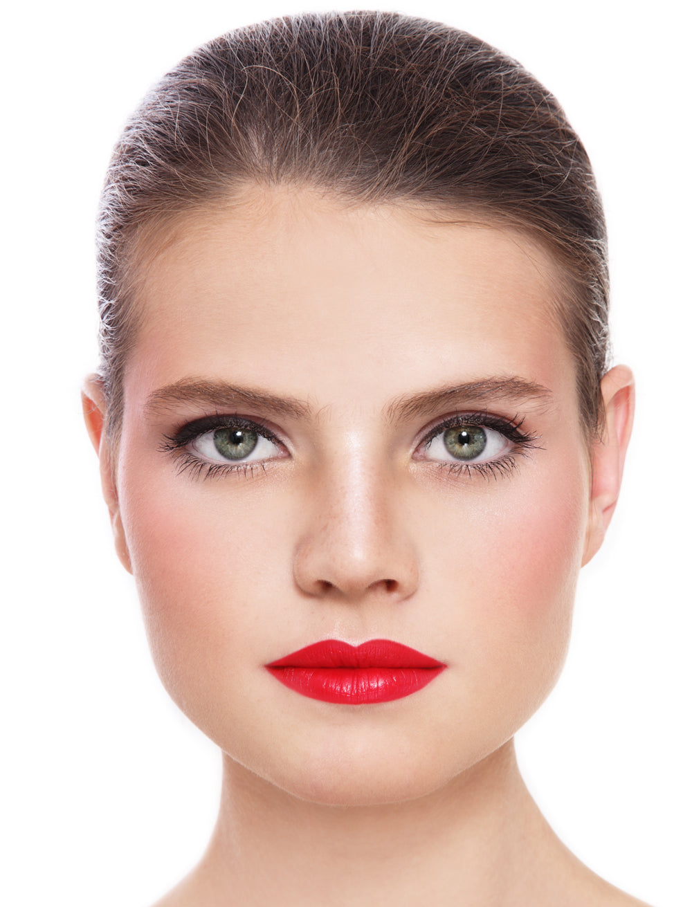 An oval face exhibits slightly wider cheekbones along with a gentle curved jawline.